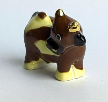 Sind Sie bereit für die lauteste Kuh in Ihrer Sammlung? Dann ist unsere handbemalte, goldene Keramikkuh mit geöffnetem Maul genau das Richtige für Sie! Mit einer Größe von nur 2 cm und in den Farben braun und dunkelbraun, ist sie der ultimative Hingucker in jedem Raum.